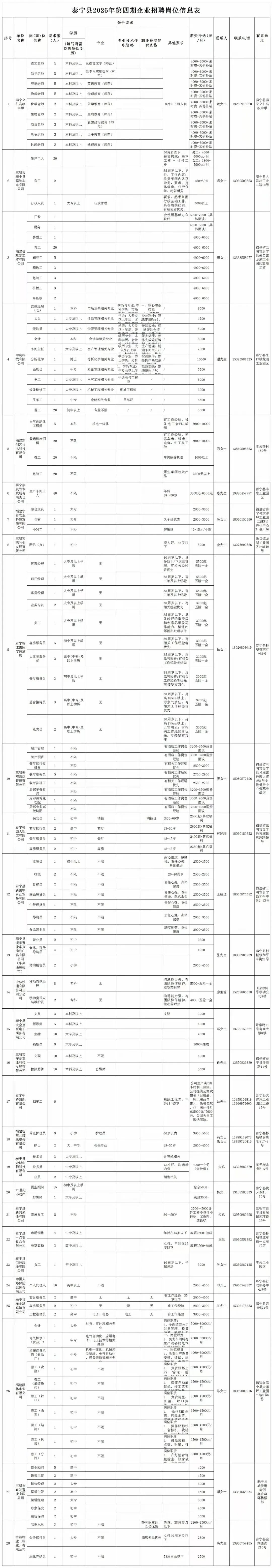 28家企业,覆盖多行业!泰宁县最新企业招聘岗位信息来袭