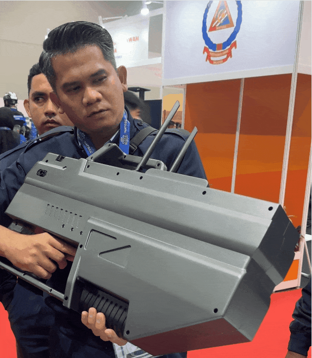 本次展会上,理工全盛聚焦国防要地、边境管控、重大安保、关键基础设施防护等核心场景,集中展示了多款“王牌”反无产品。其中,便携式和手持式单兵作战反无设备,赢得国际客户极大关心。