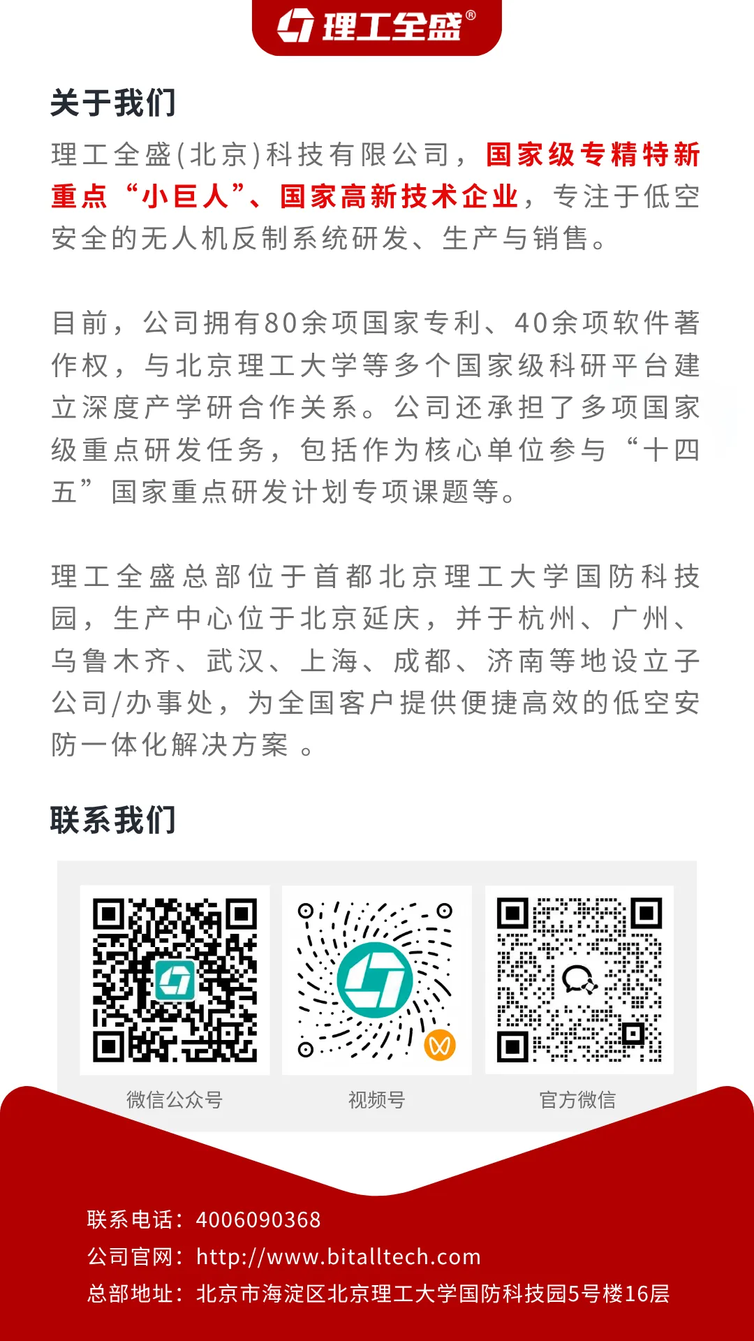 十年深耕反无人机领域,理工全盛始终坚持自主研发、技术引领、场景驱动,公司产品与方案在4000+国内重大活动、军警安保、能源化工、智慧城市等场景规模化落地,并稳步拓展海外市场。