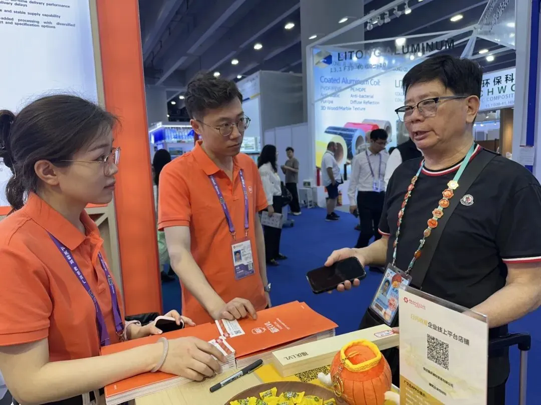 广交会首日,工程木产品展区迅速升温。福庆LVL展位迎来来自欧洲、澳洲及中东等多个区域客户的集中到访,现场交流持续进行。