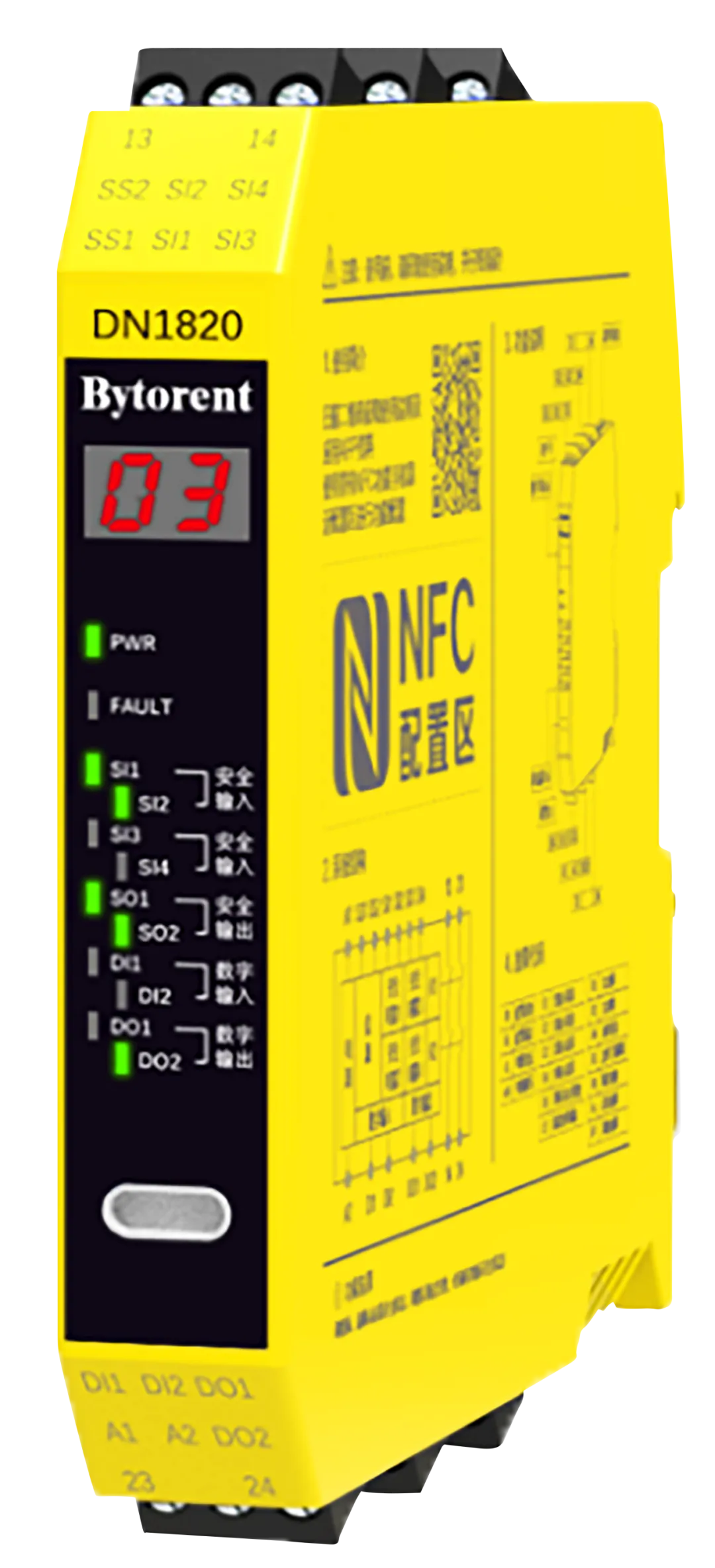 可配置安全继电器DN1820不仅实现了线上配置扩展功能,还可以三机互联,最多实现12通道传感器信号输入和6通道输出,可满足物流行业无人运输载具的安全防护系统产品的多安全传感器的应用场景需求。