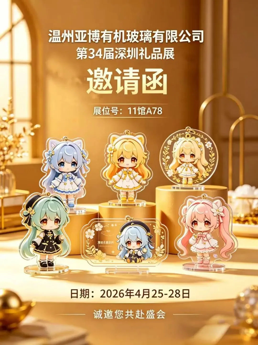 温州亚博有机玻璃有限公司诚挚邀请您莅临第34届深圳礼品展交流合作,共谋发展。