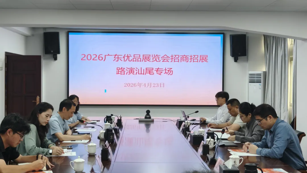 为深入贯彻落实省委、省政府“广货行天下”工作部署,加快推进2026广东优品展览会组展招商工作,助力企业开拓国内市场、积极融入双循环新发展格局,4月23日,省商务厅工作组赴汕尾开展招展招商路演,并同步召开参展企业及采购商座谈会,我市30家企业和采购商代表参会。