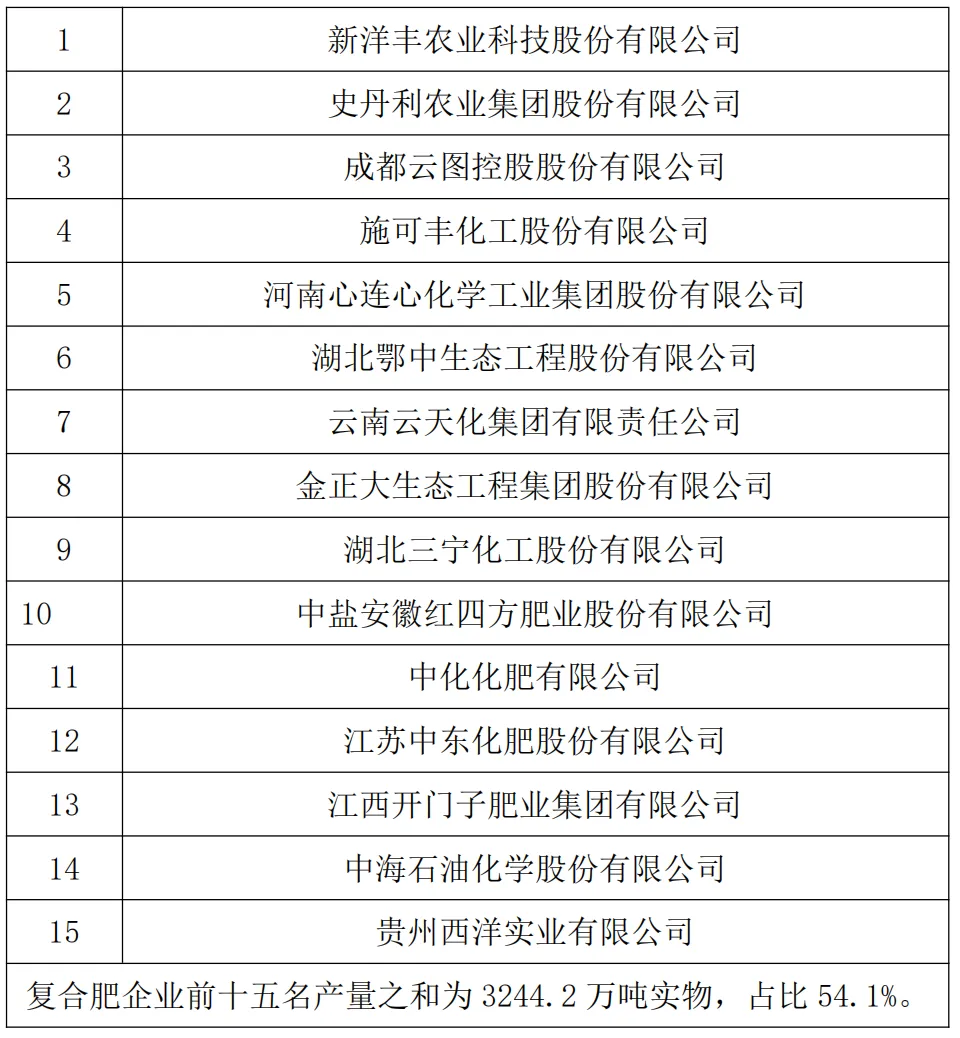 复合肥:新洋丰蝉联第一,前十五强占比过半