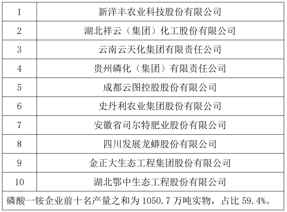 磷酸一铵:新洋丰夺冠,祥云、云天化紧随其后