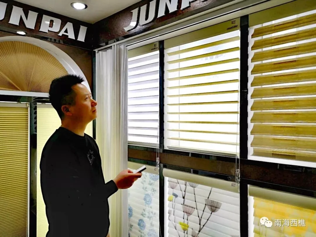 △轻纺城内企业在展示智能窗帘产品