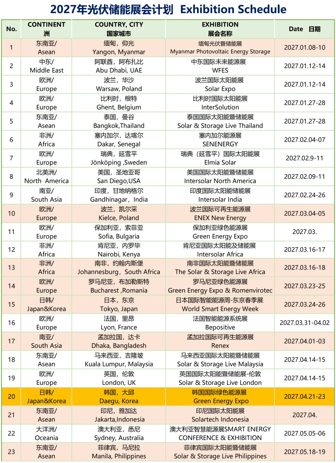 中国有80多家企业参展,行业涵盖太阳能、风能、核能、CSP+海水淡化、氢能、储能、电动汽车、碳捕获等等,参展企业包括各行业领先企业:中国核电、运达能源、明阳能源、上海电气、中国电建、中车、华为、阳光电源、比亚迪、国轩、特变、晶科、隆基、天合、晶澳、阿特斯、通威、英利、正泰、锦浪、古瑞瓦特、海博思创、海辰等等。国际企业方面包括Sunpower,ArrayTechnology,Nextracker,EDF,Fronius,Engie等参展。
