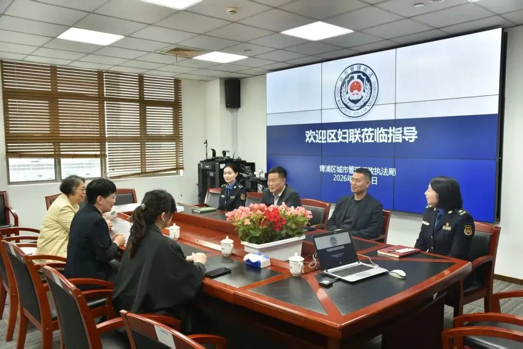 4月23日上午,青浦区妇联主席胥蔚青、副主席谢华等一行来到区城管执法局,为荣获“全国巾帼文明岗”殊荣的进博会青浦城管执法女子特勤队进行授牌并座谈。区城管执法局党组书记、局长金红,党组成员、副局长金华军及女子特勤队部分成员代表出席了授牌仪式。