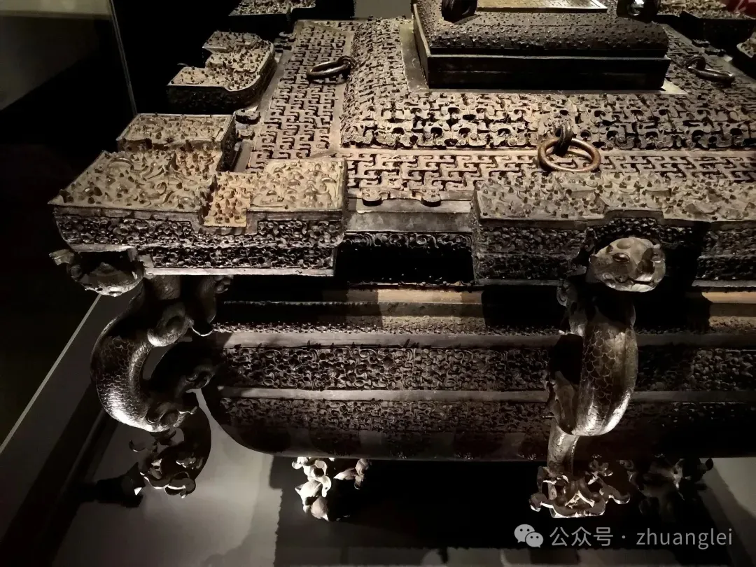 曾侯乙墓位于湖北随州城西擂鼓墩东团坡,1977 年部队扩建营房时偶然发现,1978 年 5 月正式考古发掘。墓主为战国早期曾国君主乙,下葬年代约为公元前 433 年(楚惠王五十六年),由出土镈钟铭文确证;墓为大型岩坑竖穴木椁墓,无墓道,墓坑东西 21 米、南北 16.5 米、深 13 米,椁室分东、中、北、西四室,木椁用 171 根方木垒成,四周填 6 万公斤木炭防潮,上覆青膏泥与夯土。