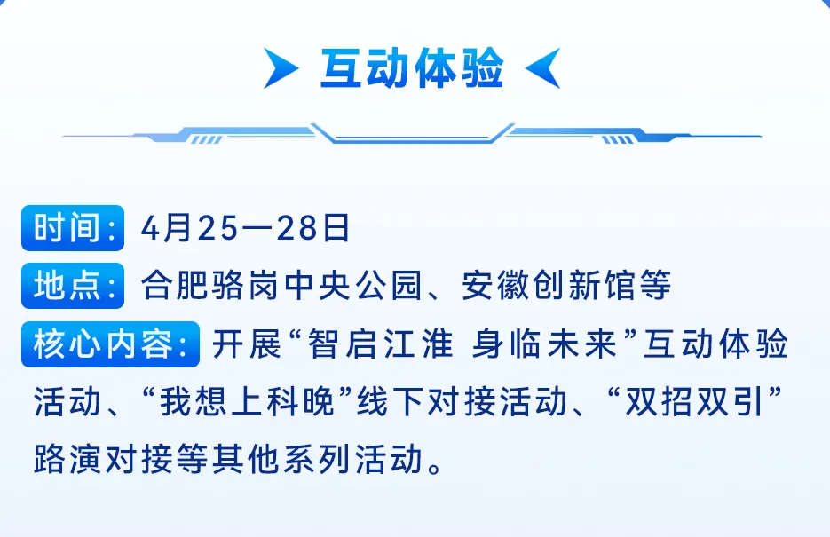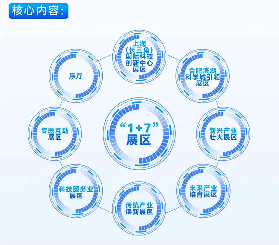 本届大会将聚焦“十五五”重点产业领域,安排20800㎡展览展示,设置序厅、上海(长三角)国际科技创新中心、合肥滨湖科学城引领、新兴产业壮大、未来产业培育、传统产业焕新、科技服务业、专题互动等展示对接区。