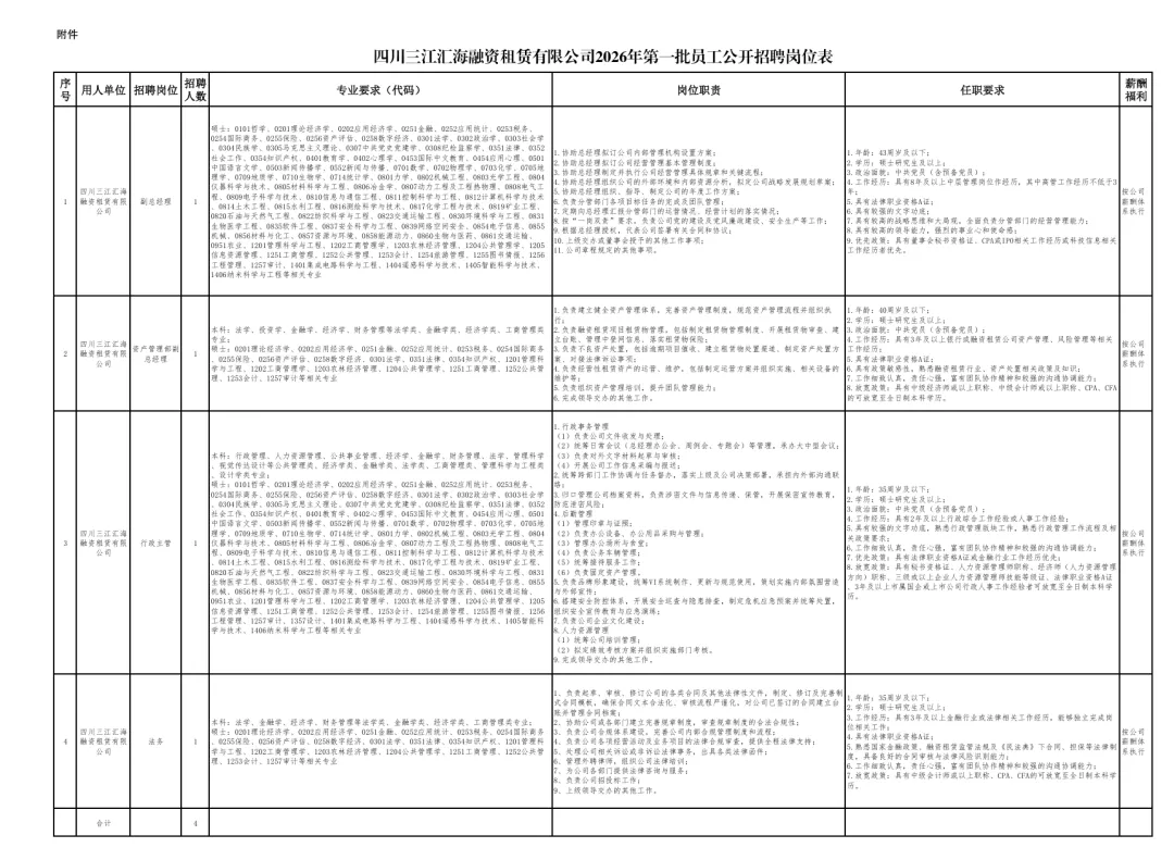 附件:四川三江汇海融资租赁有限公司2026年第一批员工公开招聘岗位表.pdf