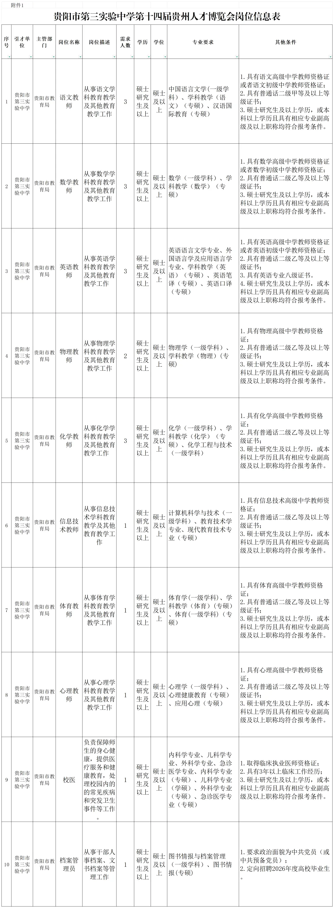 为贯彻落实人才兴市战略,根据第十四届贵州人才博览会贵阳贵安事业单位人才引进工作安排,现将我校2026年引进高层次及急需紧缺人才有关事项进行公告。