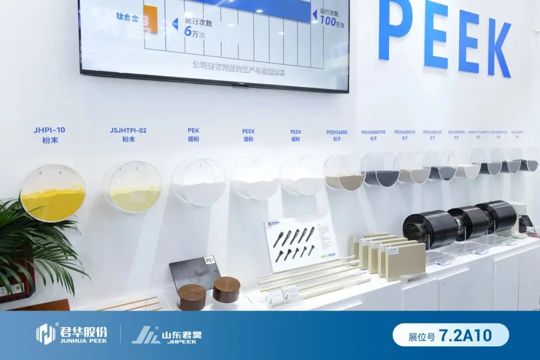 君华股份不仅展示材料本身,更呈现PEEK材料到应用解决方案的完整能力:
