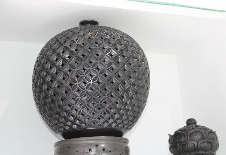走近陶艺展示区,制作精致、造型优美的齐河黑陶吸引众多观众驻足观看。“黑如漆、明如镜、硬如瓷、声如罄”,齐河黑陶多次作为国礼赠送外宾,对弘扬我国古老文化起到极大的宣传作用。齐河刘浩陶艺、龙山黑陶、张辉黑陶等创作的多件产品被领导人收藏。此外,旭腾柴烧为本县非遗项目,秉承传统古法柴烧烧制方法,原始制作技艺,并适应时代需求,推出手捏柴烧作品、柴烧培训、体验、研学等项目,为古法柴烧的传承与发展做出了巨大贡献。