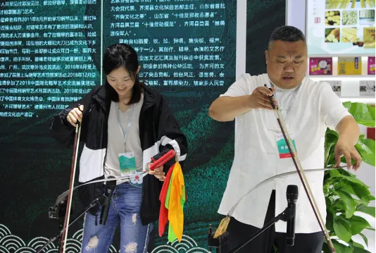 齐河锯琴、秸秆扎刻等具有深厚齐河文化特色。其中锯琴作为市级非遗项目,是将普通木工用的手锯演绎成为一种无键、无弦、无固定位置、无定调的特殊乐器,演奏老师以左手弯曲锯片,改变其音高,右手用马尾弓来拉奏,引来无数观众纷纷驻足观看,赞叹连连。