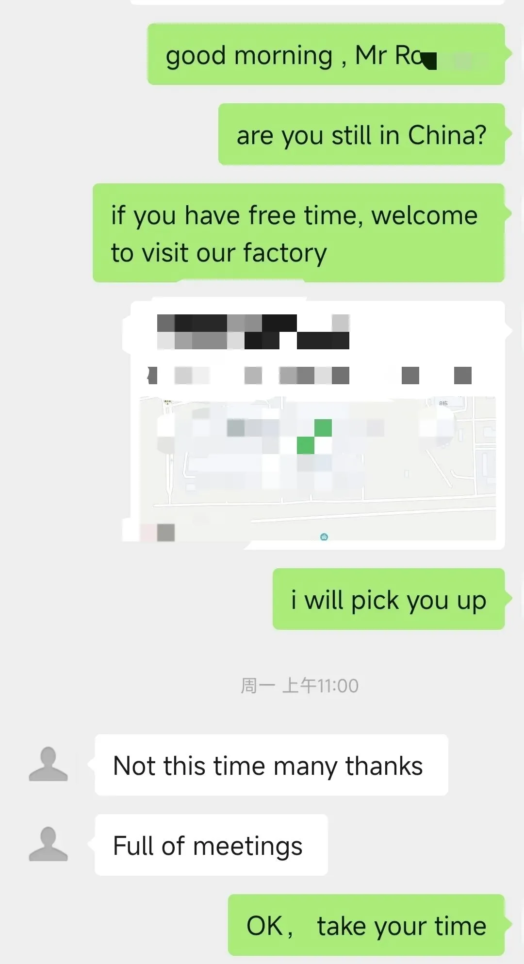 所以第一件事,马上给展会对接的所有客户,挨个发工厂参观邀请函,直白告诉客户:很开心展会和您相识,诚挚邀请您抽空来我们工厂实地考察,我们随时恭候,提前帮您安排好接待。