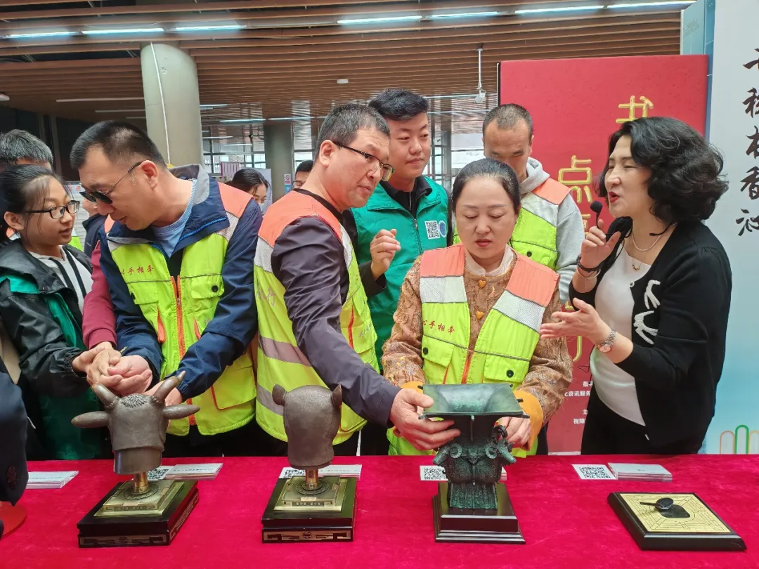 活动现场亮点纷呈,分为视障文化展示、可触摸展品展示与互动体验三大板块,兼顾文化性与趣味性。在视障文化展示区,大家通过图文资料,自主了解视障文化发展历程、科技赋能无障碍阅读等内容。在可触摸展品区,四羊方尊模型、中国商飞C919模型等涵盖历史文物、传统建筑与现代科技成果的10件展品整齐陈列,让视障读者能够通过指尖触摸,感知文物的轮廓、建筑的结构与时代的印记,实现了“触手可及”的文化体验。互动体验区同样人气高涨,拓印、制作盲文书签、十二生肖印章等特色活动吸引了大批视障读者与社会公众参与。在志愿者的耐心指导下,大家亲手体验拓印技艺,感受传统文化的厚重;亲手制作盲文书签,在指尖操作中感受盲文的独特魅力;触摸按压十二生肖专属印章,留存民俗文化印记。