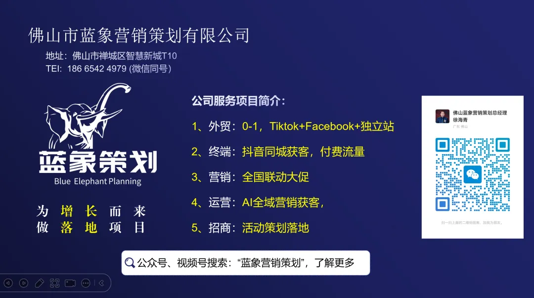 2.社媒发力:YouTube(做专业)、LinkedIn(签大单)、TikTok(做曝光)、Facebook(稳老客)、INS(做颜值)、X(做发声),6大社媒各有侧重,精准引流;