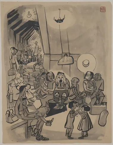 抗战爆发后,叶浅予率漫画宣传队赴南京请战、筹办抗战漫画展,出版《抗战漫画》并编印《日寇暴行实录》的抗日救亡经历。本单元展现了他创作的《战时重庆》组画与《逃出香港》系列,揭露日寇暴行,鼓舞军民抗战信念。