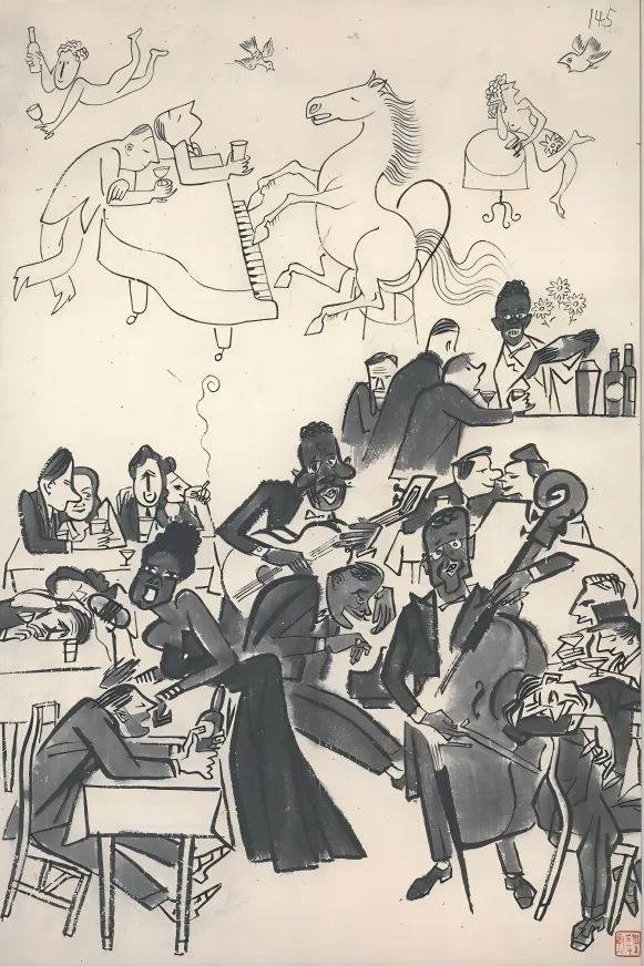 在大后方期间,叶浅予深入贵州苗区写生、印度采风、旅居四川、应邀访美期间的艺术转型历程。归国创作的长篇漫画《天堂记》幽默而犀利地解构了“美国神话”,至今读来仍发人深省。