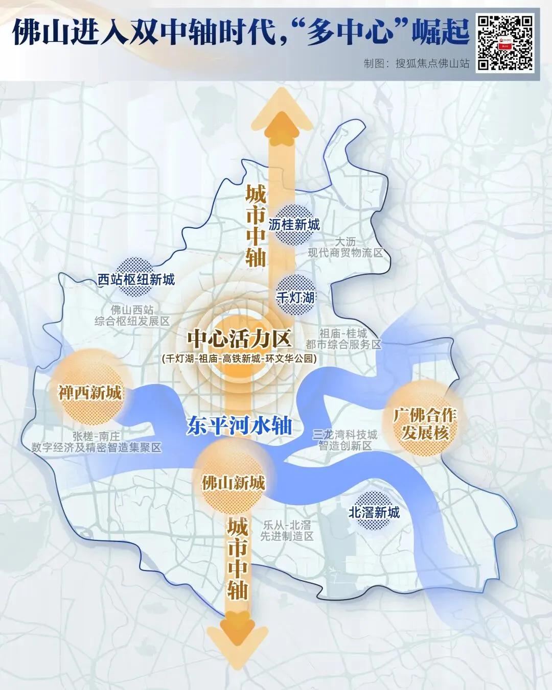 1.佛山构建双中轴、多中心的城市格局,发展势能更硬核。