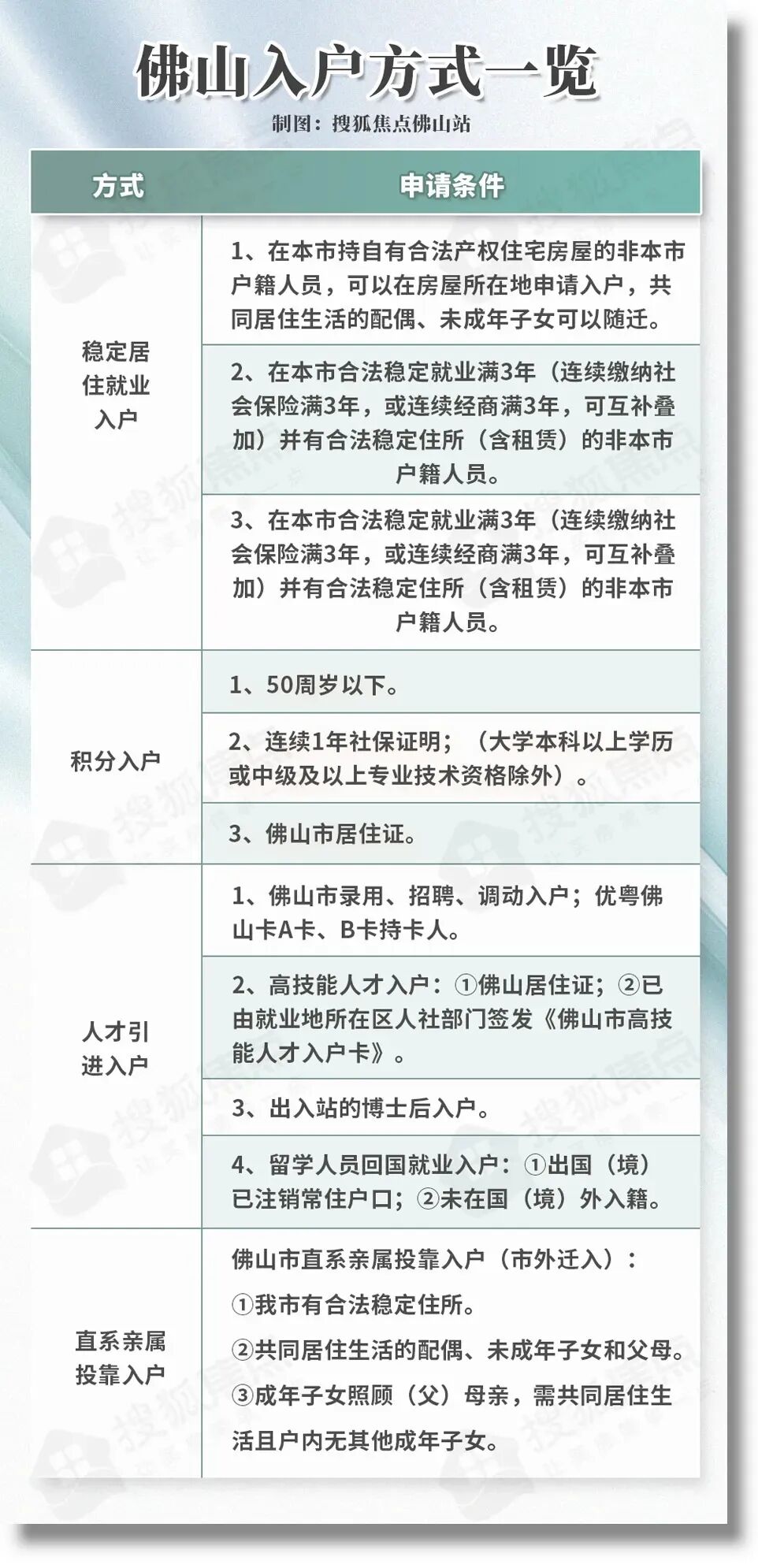 与此同时,佛山还提供多种入户途径,包括购房即入户,大专以上学历、有社保就可申请。