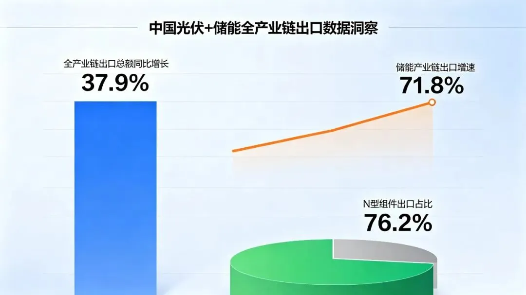 这股火爆势头并非偶然,行业数据与最新政策早已给出答案。2026年一季度,中国光伏+储能全产业链出口总额同比增长37.9%,其中储能产业链出口增速高达71.8%,N型组件出口占比达76.2%,高端产品已成为出口增长的核心引擎。而广交会光伏储能专区的设立,恰好搭建起中国光储企业与全球市场对接的“桥梁”——既助力企业避开贸易壁垒、拓宽出海渠道,也让全球采购商直观感受到中国光储产业的全链条优势,实现双向赋能。