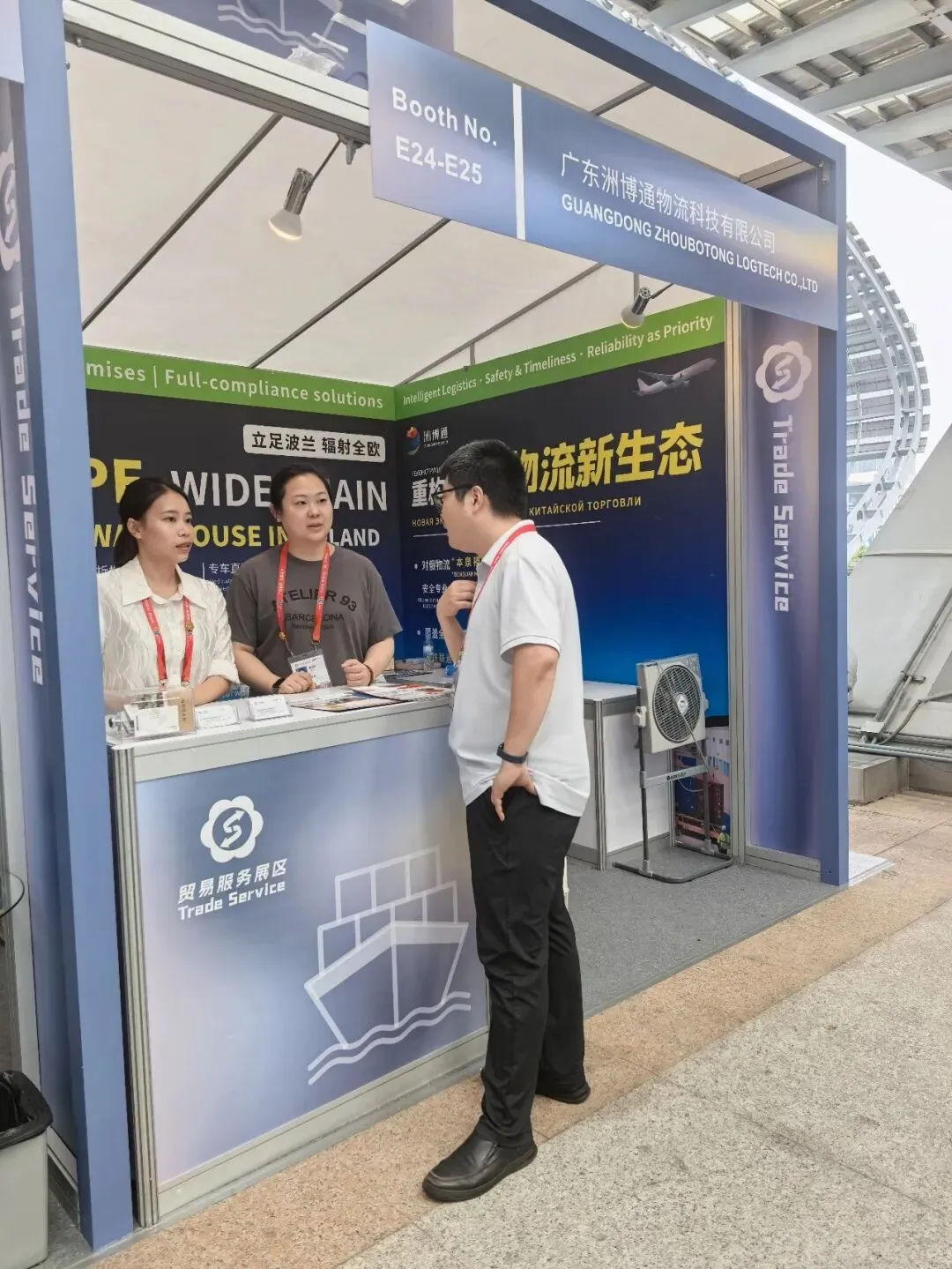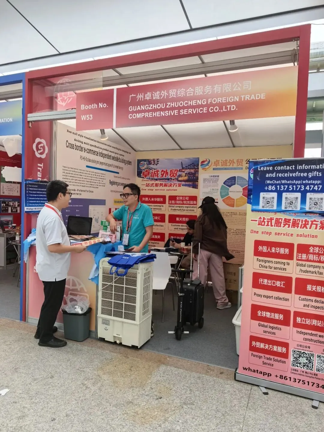 4月18号,广州市商务局对外贸易发展处副处长何兵在广州市场采购贸易协会秘书长吴泽坤陪同下,前往广交会第一期企业展位调研。调研企业分别是广东大旗财税顾问有限公司、广东洲博通物流科技有限公司、广州卓诚外贸综合服务有限公司、广州市利迪汽车用品有限公司、广州韩乐电器实业有限公司。