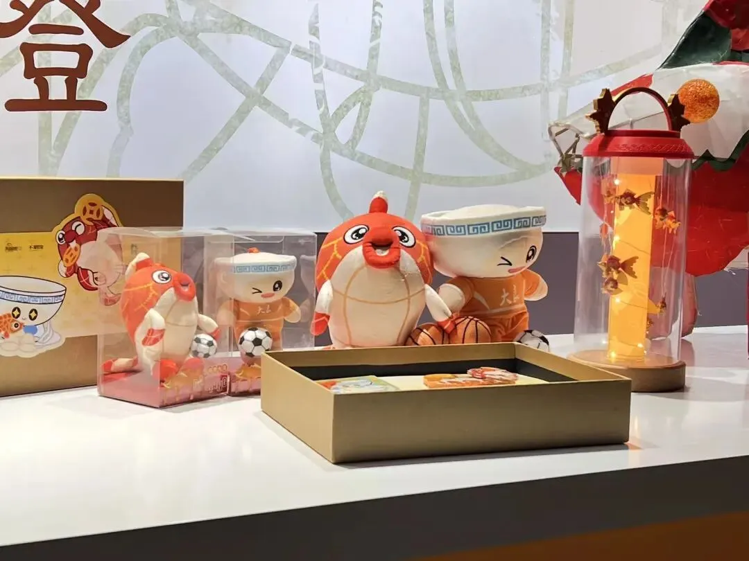 其中,“金玉满堂”手提灯以鱼群绕梁、灯影如星河浮游的梦幻意境为特色,手提部分双鱼衔环,鳞片采用工业级精雕技术逐片刻就;“鱼乐昇平”3D打印相框灯未亮时如极简线稿,点亮瞬间百鱼嬉游、灯火璀璨,宛如穿越大良古巷;“流光溢彩”大良鱼灯台灯将传统鱼灯灵动骨架与台灯功能结构相融,亮灯后鳞片透出斑斓色彩;“顺风顺水”冰箱贴礼品灯以大良城市IP“皮皮”“鲤鲤”携手顺峰山公园地标为灵感,零件可自由拆解组合;“如鱼德水”冰箱贴套装将顺峰山湖光山色、满洲窗斑斓光影凝为IP形象,一套多款萌趣横生;“皮皮鲤鲤德甲限定款”毛绒玩偶则为顺德本土“德甲”赛事专属联名,足球以磁吸设计自由拆卸,热血与软萌破次元碰撞。