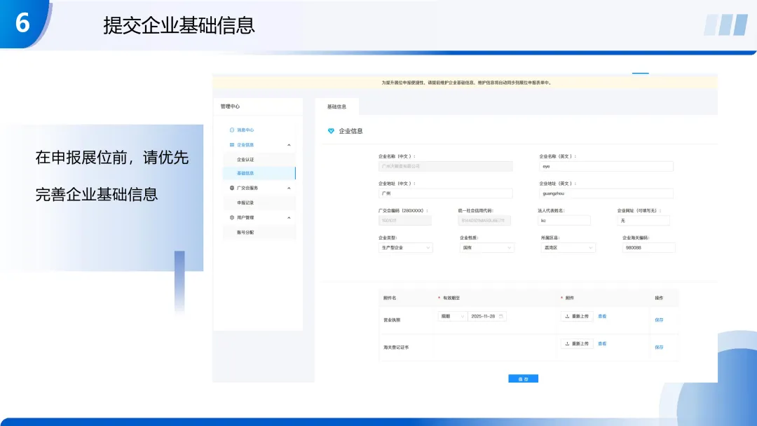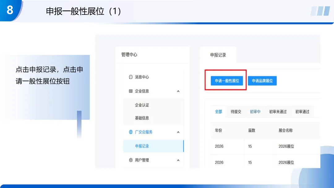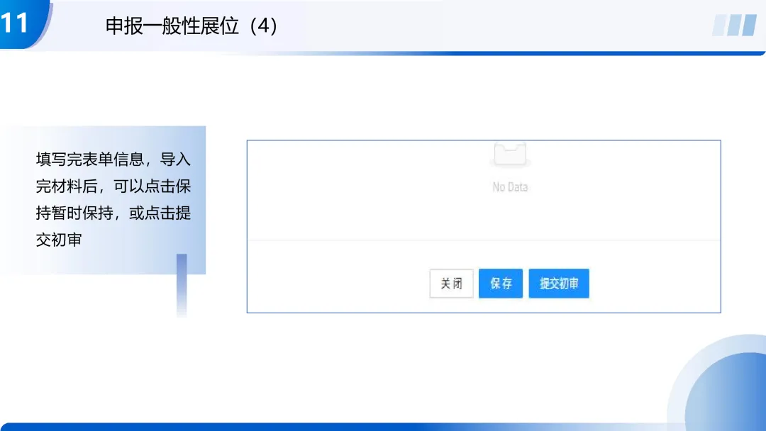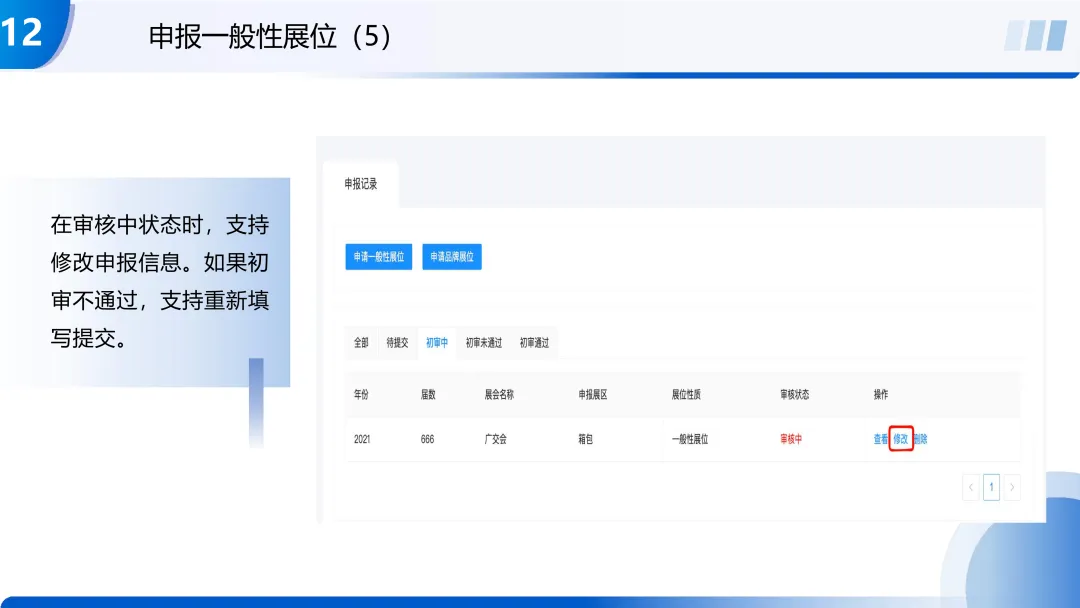完成信息填报及材料上传后,在系统内提交审核,完成一般性展位预申请操作。