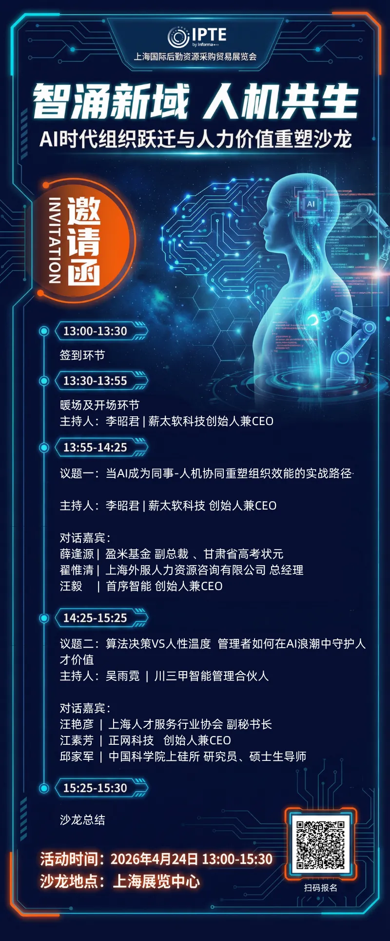 智启十五五・AI赋能企业高质量发展沙龙、智涌新域,人机共生——AI时代组织跃迁与人力价值重塑沙龙现场,将由薪太软、中国科学院上硅所等单位负责人、优秀青年企业家分享前沿实践。基于行业交流需求与企业合作意向,展期内创新举办差旅经理、行政经理、人事经理交流会,为行业从业者提供深度交流平台,并助力企业快速对接优质资源。
