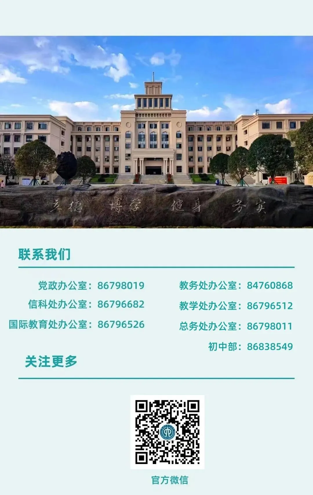 请各位人才密切关注“贵阳六中”微信公众号,届时相关信息将通过以上渠道进行公布。此次招聘全程不收取任何费用。