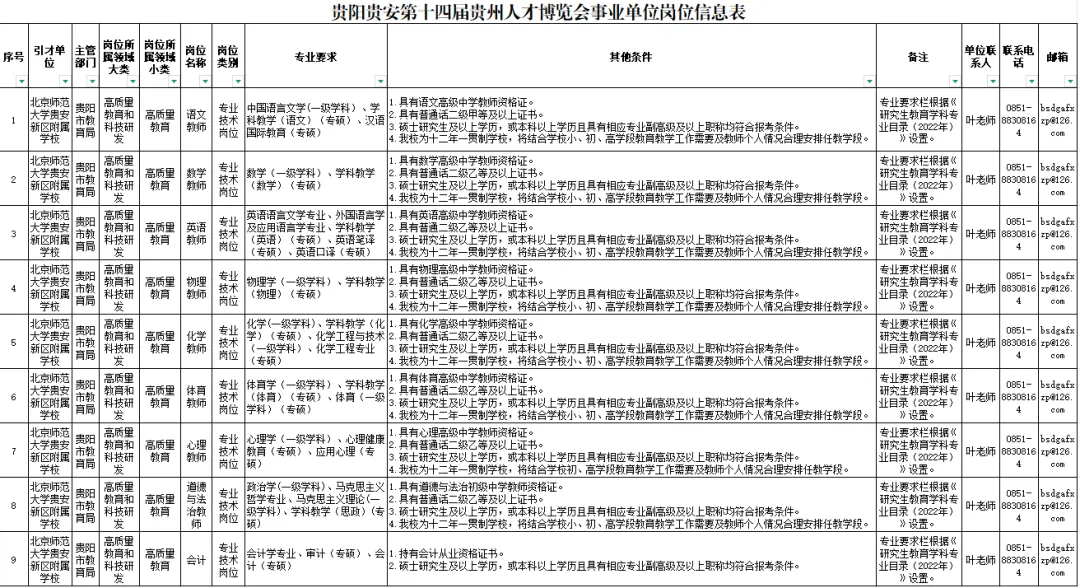 为进一步充实教师队伍力量,为学校高质量发展助力,根据第十四届贵州人才博览会贵阳贵安事业单位引进高层次及急需紧缺人才工作安排,学校拟引进高层次及急需紧缺人才31人,现就有关情况公告如下: