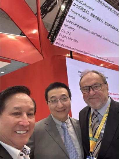 在演讲的后半部分,Hanschke 教授进一步谈到自己对中国科技创新发展的观察。他明确表示,中国早已不只是传统意义上的“世界工厂”,而是在越来越多领域成长为重要的技术引领者和创新驱动者,“created by China”正在成为一个愈发清晰的标签。他列举了多个让国际社会印象深刻的发展案例,以说明中国在人工智能、重大工程和前沿技术应用等方面的持续突破。在他看来,这种发展不是偶然的,而是建立在长期投入、系统组织和明确目标之上的。也正因此,国际社会更应以开放和前瞻的眼光看待中国的发展,并从中寻找更多合作空间与共同机遇。演讲最后,他以一句简洁有力的话作结:“Think Tech Forward in Partnerschaft mit China!”这既是他的观察,也是他的倡议——面向未来思考技术发展,并在与中国的伙伴关系中寻找新的可能。