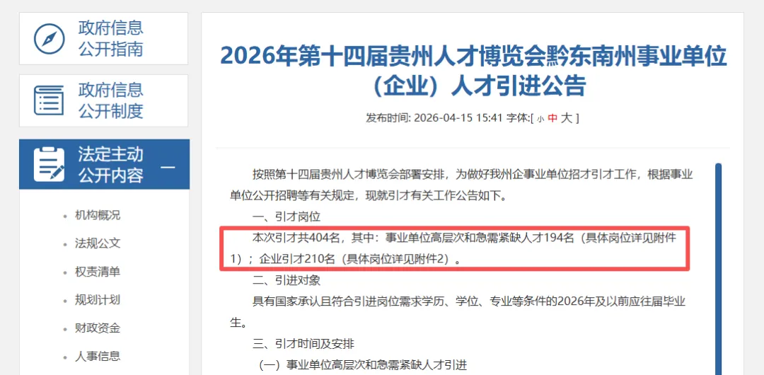 招聘人数:404人,企业210人,事业单位和紧缺人才194人