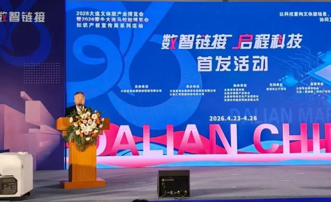 4月23日上午,2026大连文体旅产业博览会暨蒙牛大连马拉松博览会核心活动——“数智链接·启程科技”首发仪式在大连世界博览广场A馆正式启动。本次活动以知识产权护航创新、数智技术赋能产业为主线,集中发布了一批适配文体旅应用场景的前沿科技成果,为大连文体旅产业高质量发展注入新质生产力动能。大连市特色文化产业促进会副会长单位、大连市轻工业学校党委书记毛军出席本次发布仪式,与各界嘉宾共同见证科技与文体旅深度融合的创新成果,助力大连文体旅产业高质量发展。本次活动举办于第26个世界知识产权日(4月26日)前夕,紧扣全球主题“知识产权和体育:各就位、预备、创新!”以及全国知识产权宣传周“加强新兴领域知识产权保护 加快新质生产力发展”年度主题。主办单位大连星海会展旅游集团有限公司董事长柳振福在致辞中指出:“没有知识产权护航,创新便难以走远;没有科技赋能,文体旅产业便缺少跃升的翅膀。”活动现场特设知识产权保护咨询服务台,由大连(国家级)知识产权保护中心为参展企业提供专利布局、商标注册、版权保护等专业指导,并发布文体旅领域科技产品知识产权保护指南,从制度层面为科技成果转化提供保障。
