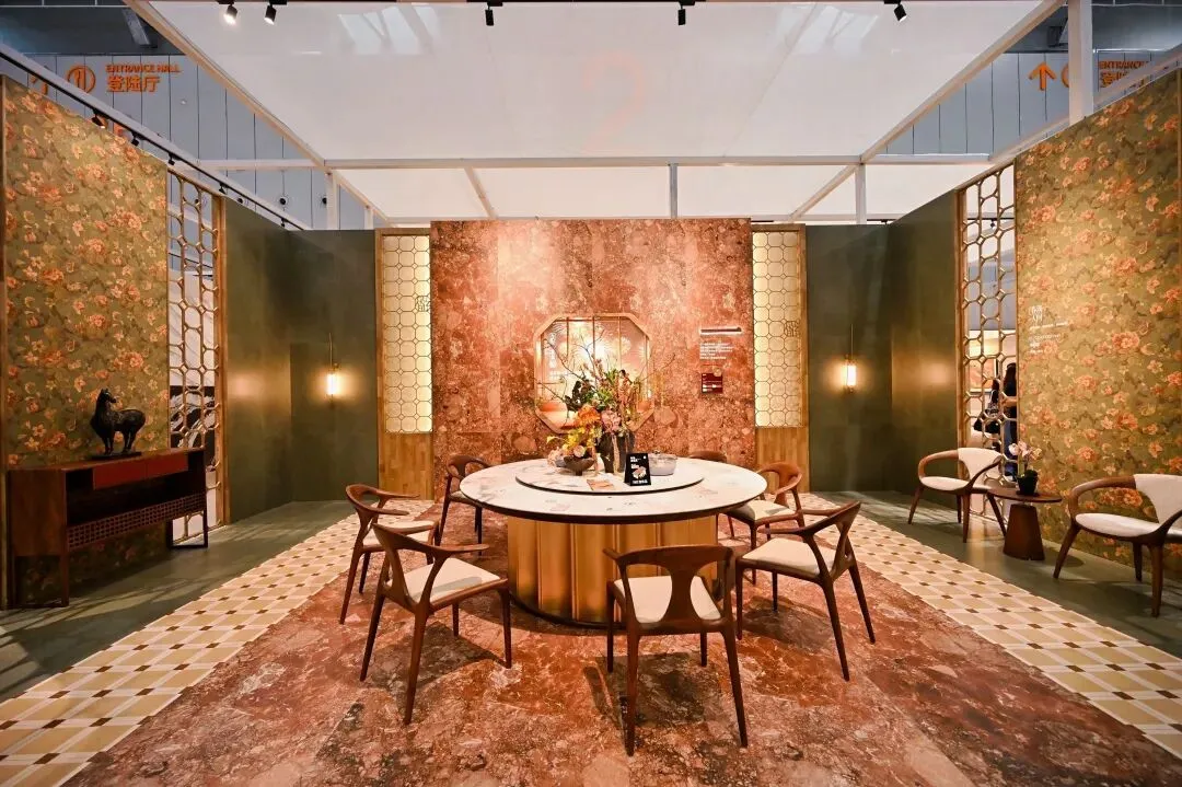 但冠珠的展位,绝不止好看那么简单。展会上,冠珠明确提出从“全品类产品供应商”向“高端空间解决方案服务商”升级,通过高端岩板新品“华韵”及其首个宅院应用示范,推动高端岩板系统的标准化、数字化落地,赋能终端经销商,向高价值方向转型。