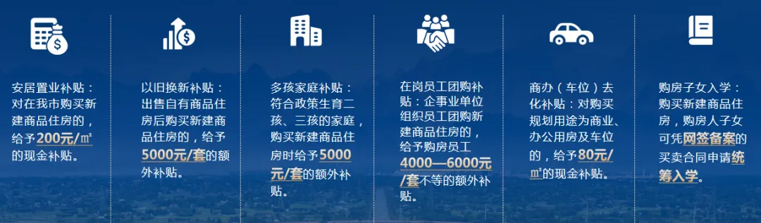 购房补贴:购买新建商品住房按200元/㎡给予一次性补贴,叠加“以旧换新”、多孩家庭、团购补贴等,单套住宅最高可补4.6万元。商办、车位按80元/㎡补贴,无上限。