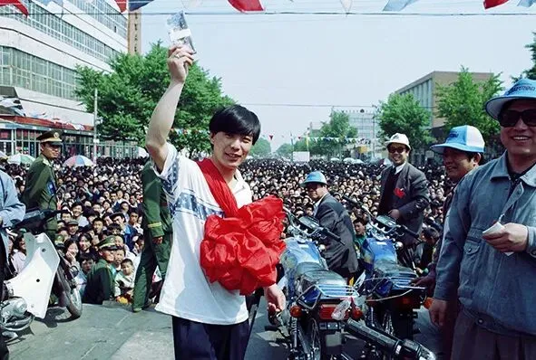 搏克手拿着“二哥大”报喜