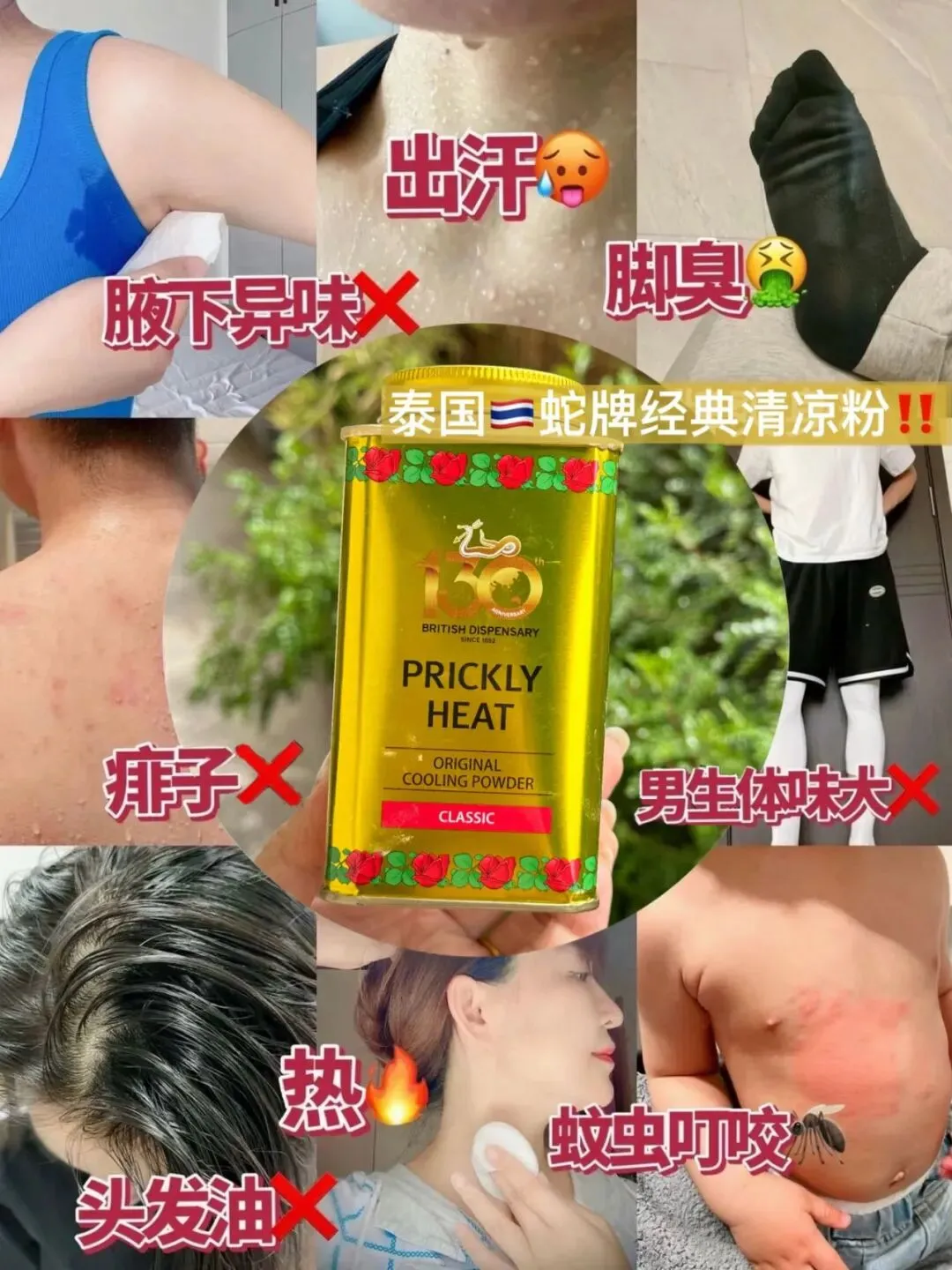 蛇牌清凉粉利用泰国亚热带得天独厚的气候优势,源自泰国的传统秘方,采用薄荷醇等天然成分吸干多余汗液快速缓解闷热!