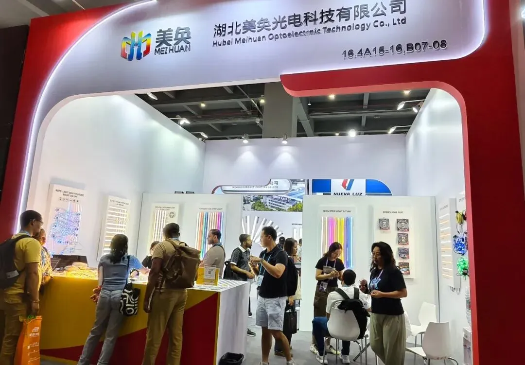 湖北美奂光电科技有限公司展出的LED动态全彩节能灯串,采用高亮度LED芯片、纯铜芯线与IP68防水灌胶工艺,集成调光、触控感应及远程智能控制等先进技术,兼顾优异导线性能和绿色低能耗,吸引来自迪拜、沙特、土耳其、埃及等国家客商现场下单,订单额总计超373万美元。