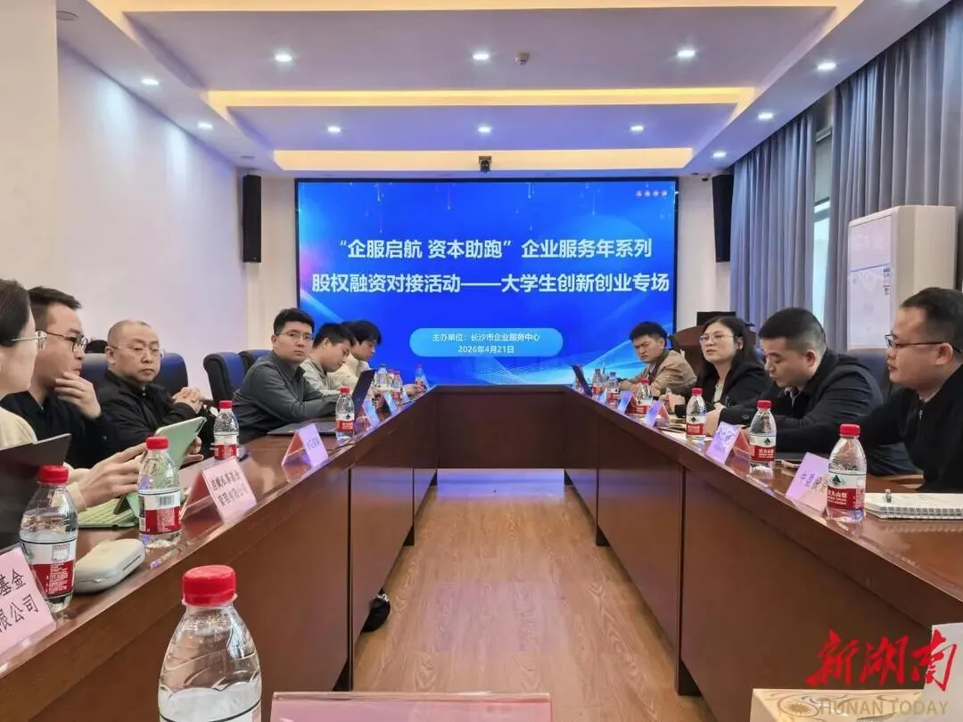 4月21日,2026年“企服启航资本助跑”企业服务年系列股权融资对接活动——大学生创新创业专场在长沙市企业服务中心成功举办。活动以资本赋能、精准对接为核心,搭建青年创客与金融资本交流合作平台,助力大学生留湘来湘创新创业,为长沙实体经济高质量发展注入青春动能。