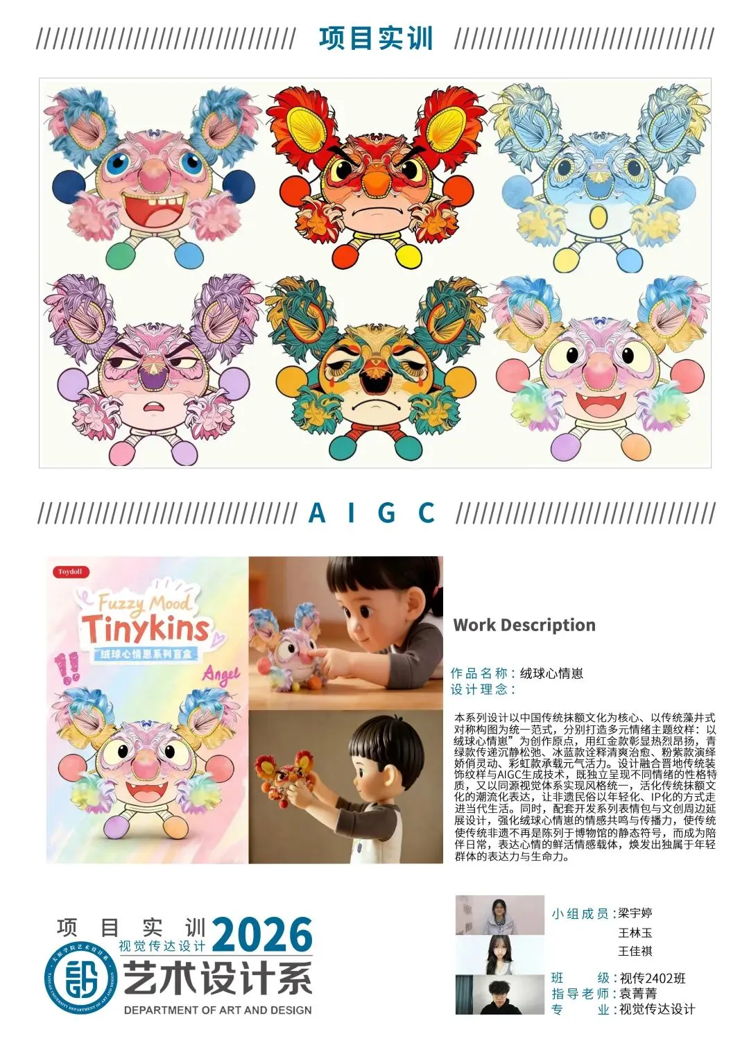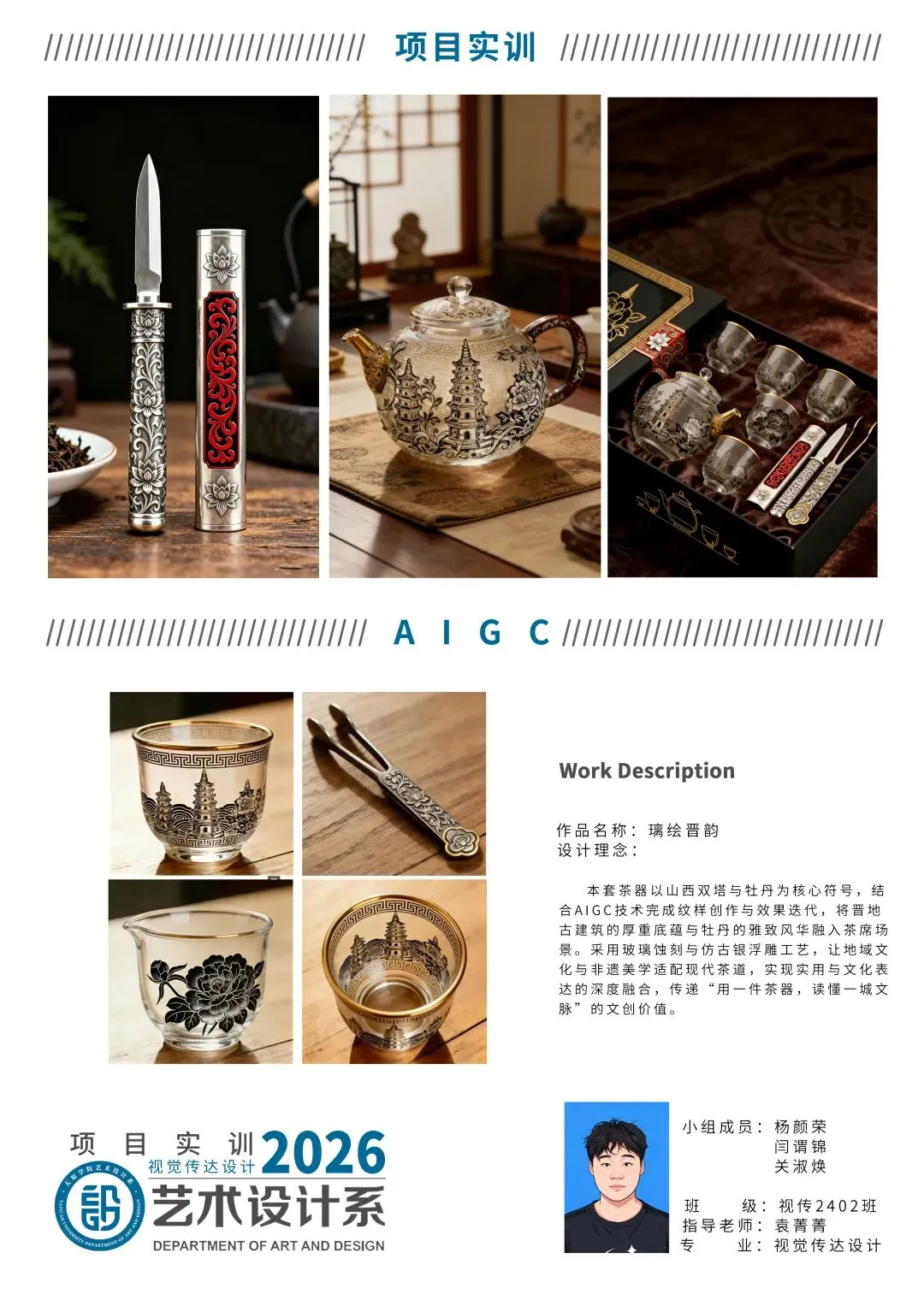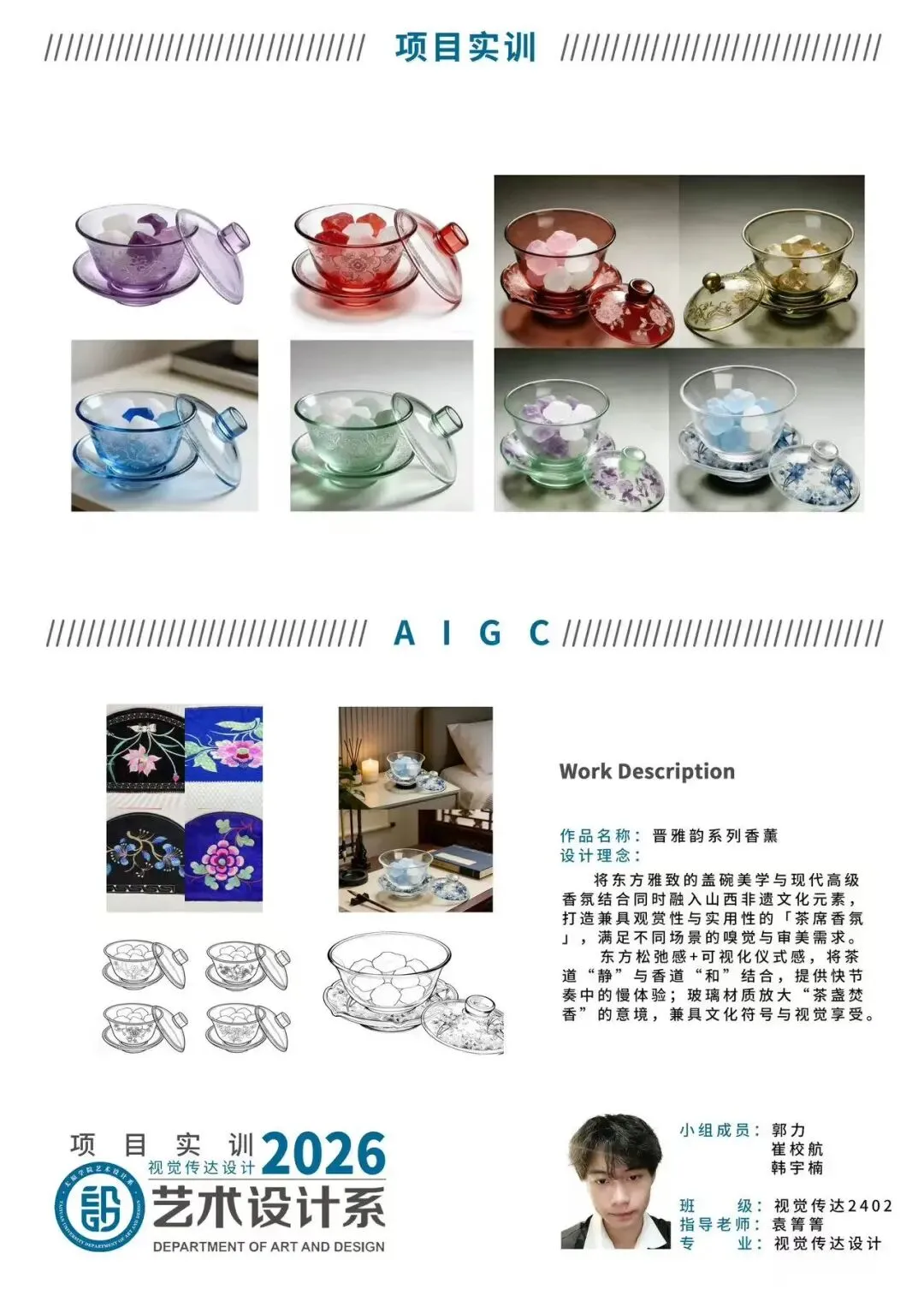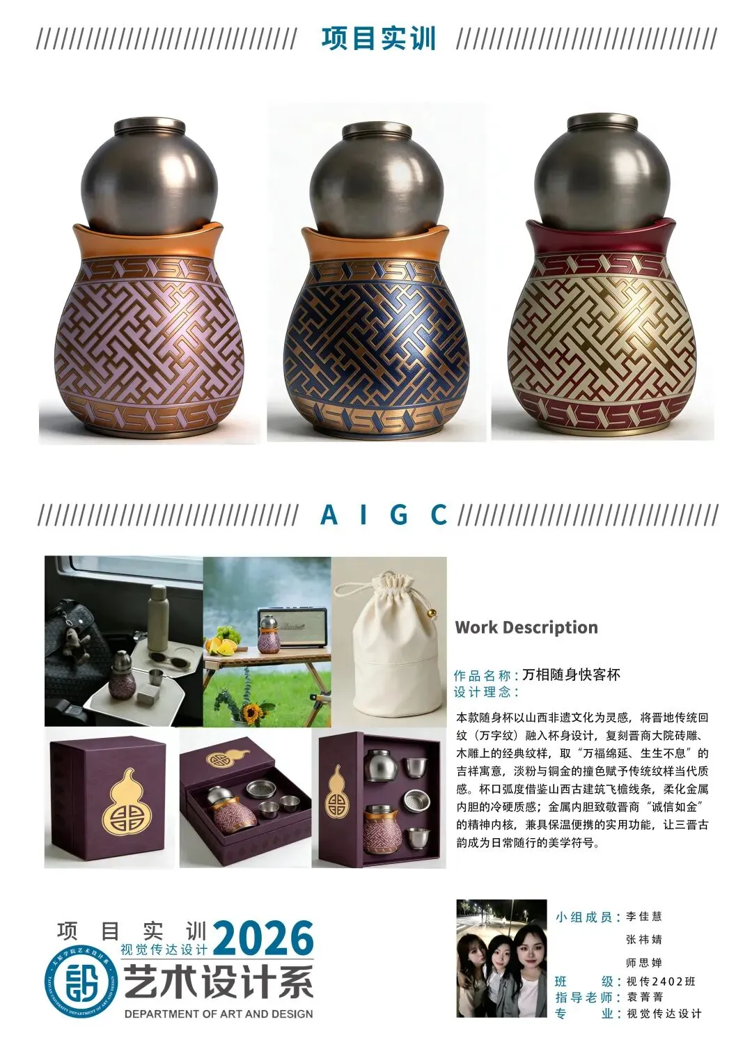 本课程要求学生通过两周的集中学习,以山西地方民俗文化为核心创作载体,引导学生深度参与真实设计项目实践,帮助学生精准把握视觉传达设计行业的评判标准与应用规范。通过项目化专题训练,学生对前期课程积累的理论知识、专业技能与实践经验进行系统整合与综合提升,有效激发学习主动性与创作热情。在围绕山西地方民俗文化开展的项目化设计练习中,切实培养学生综合运用专业知识进行命题创作与落地实践的应用能力。