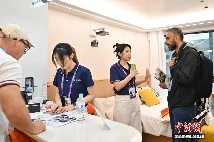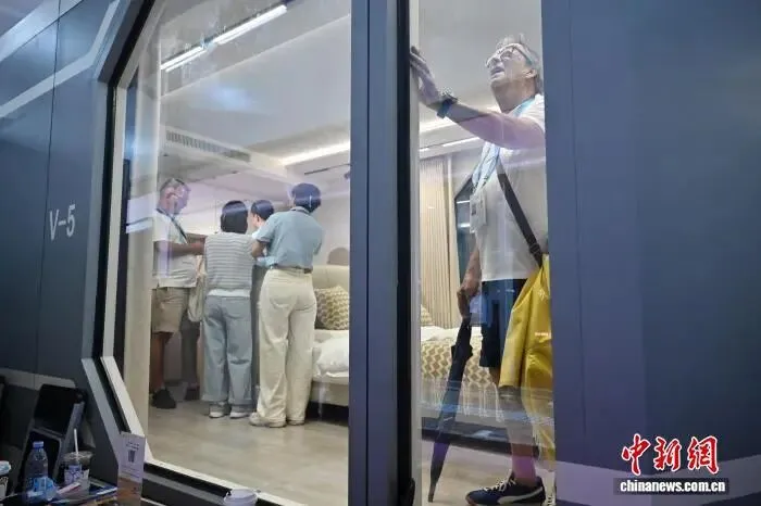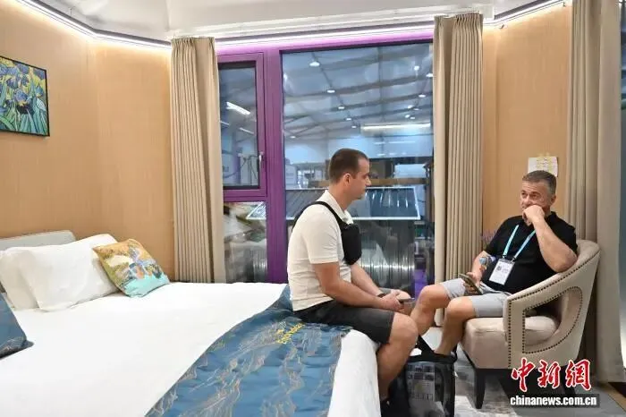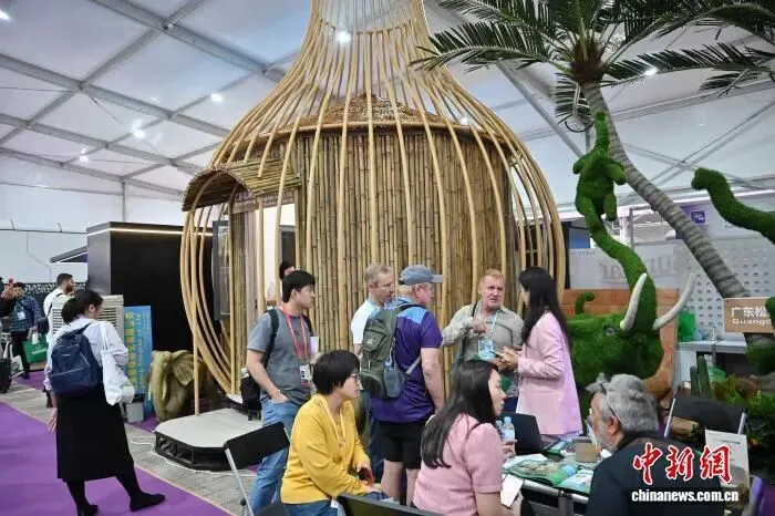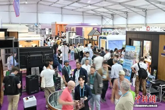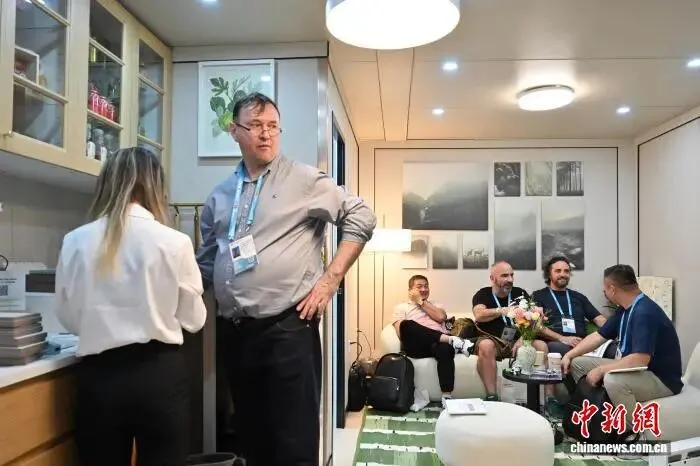 4月23日,第139届中国进出口商品交易会(广交会)第二期在广州开幕迎客。据介绍,本届广交会紧跟全球产业“新、绿、智”发展趋势。其中,第二期聚焦“品质家居”主题,新设时尚饰品、竹木餐具、竹木家居用品、集成房屋及庭院设施4个专区。集成房屋在模块化建造和绿色低碳方面优势明显,国际市场需求持续增长。图为境外采购商和参展商在一集成房屋内洽谈。
