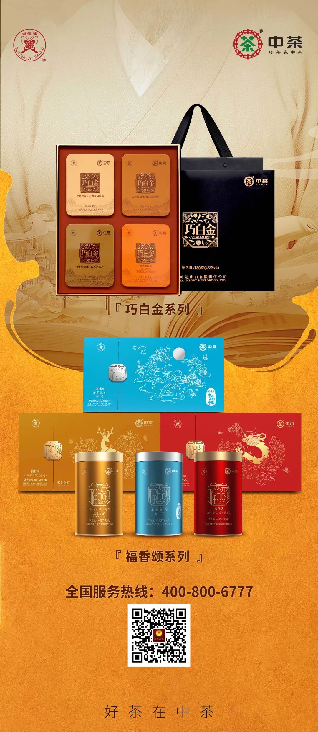 展会期间,诚邀各地茶商、茶友们莅临中茶展位T726,品味新上市的“银针白毫”及“人间生草木”、“金中茶水仙白”等产品的独特魅力,同时还能现场体验小巧便捷的巧白金系列、福香颂节庆系列的白茶、茉莉花茶等,满足您的不同需求。