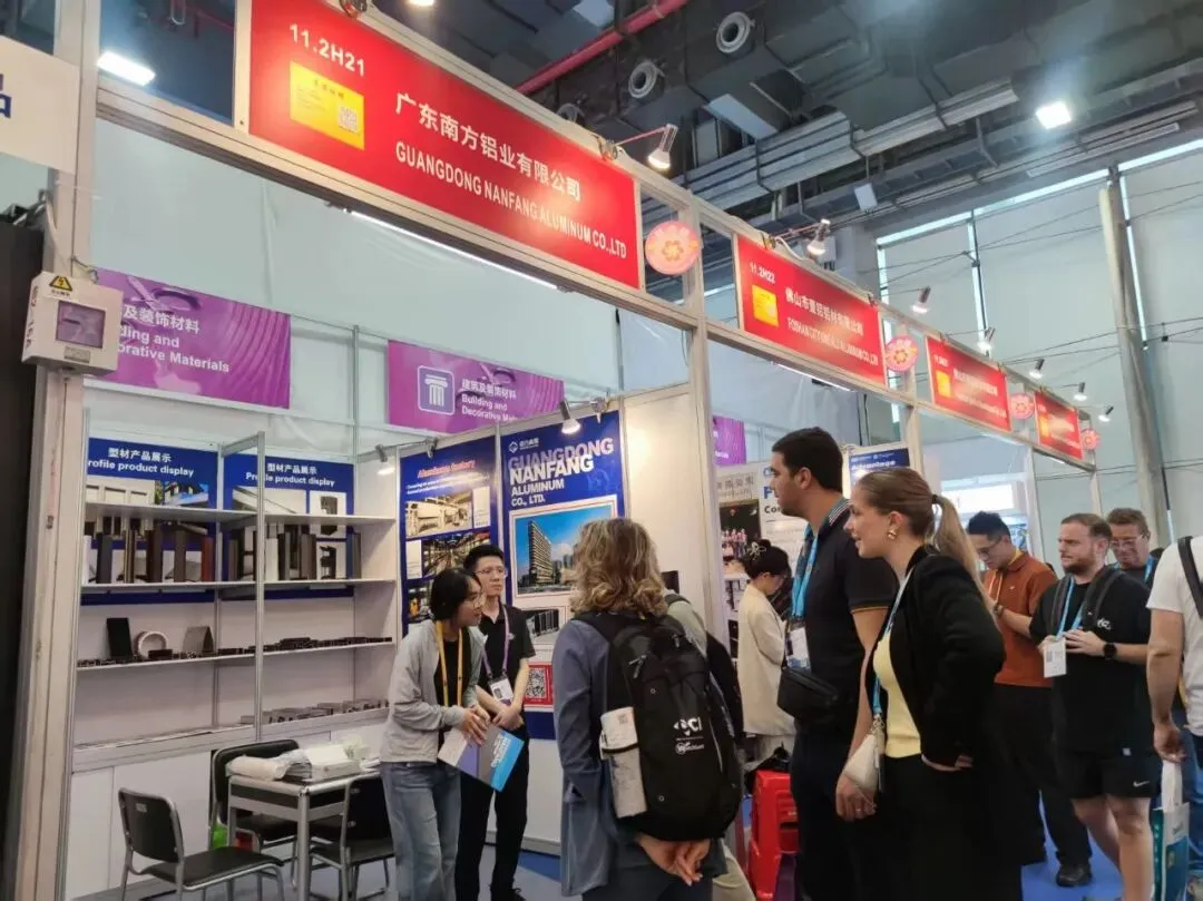 在建材展区,广东南方铝业的展位前客商络绎不绝。展位上整齐陈列的铝合金型材涵盖建筑、工业、新能源等多个领域,从常规门窗型材到特殊定制的工业构件,丰富的产品矩阵让海外采购商直观感受到广宁工业制造的专业实力。