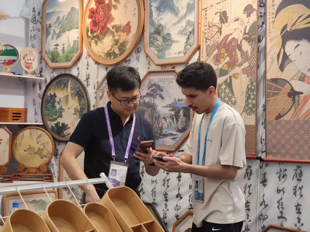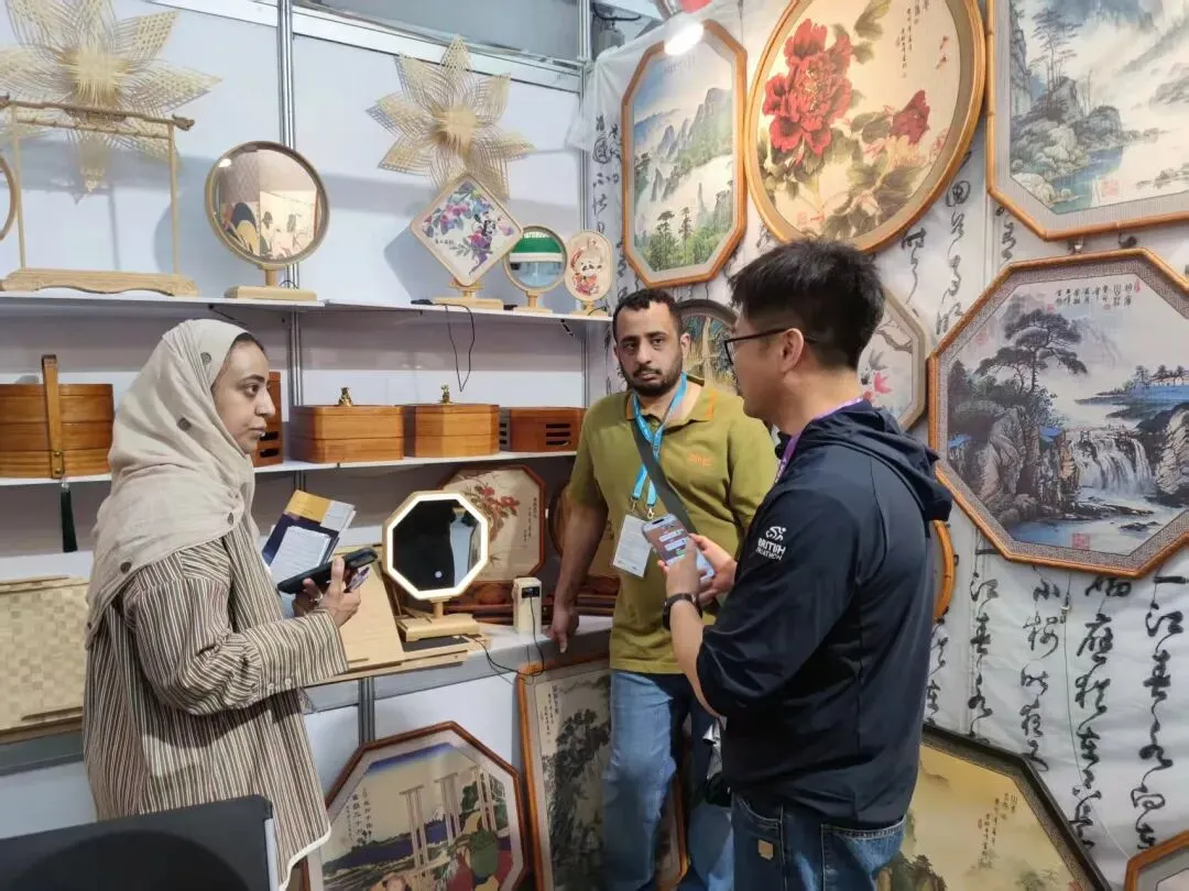 沙特阿拉伯客商被广宁竹丝工艺画精湛做工与独特创意深深折服,被浓厚的中华文化韵味所打动,当场表达了将这份东方美学带回故乡的强烈愿望,希望让更多中东友人领略中国竹艺的非凡魅力。这份跨越山海的文化共鸣,不仅为广宁竹艺打开了中东市场的新窗口,更让中国传统手工艺在国际舞台上焕发出独特的光彩。