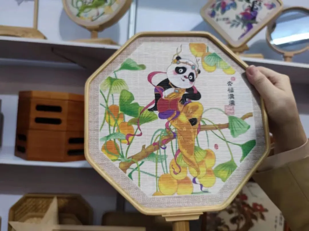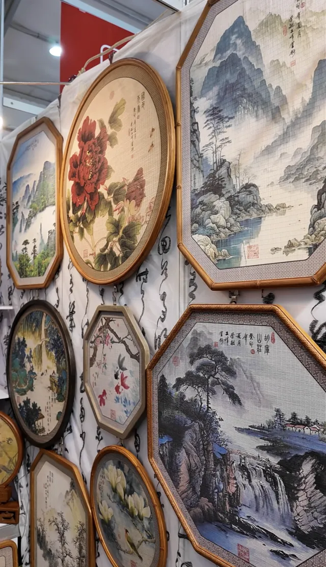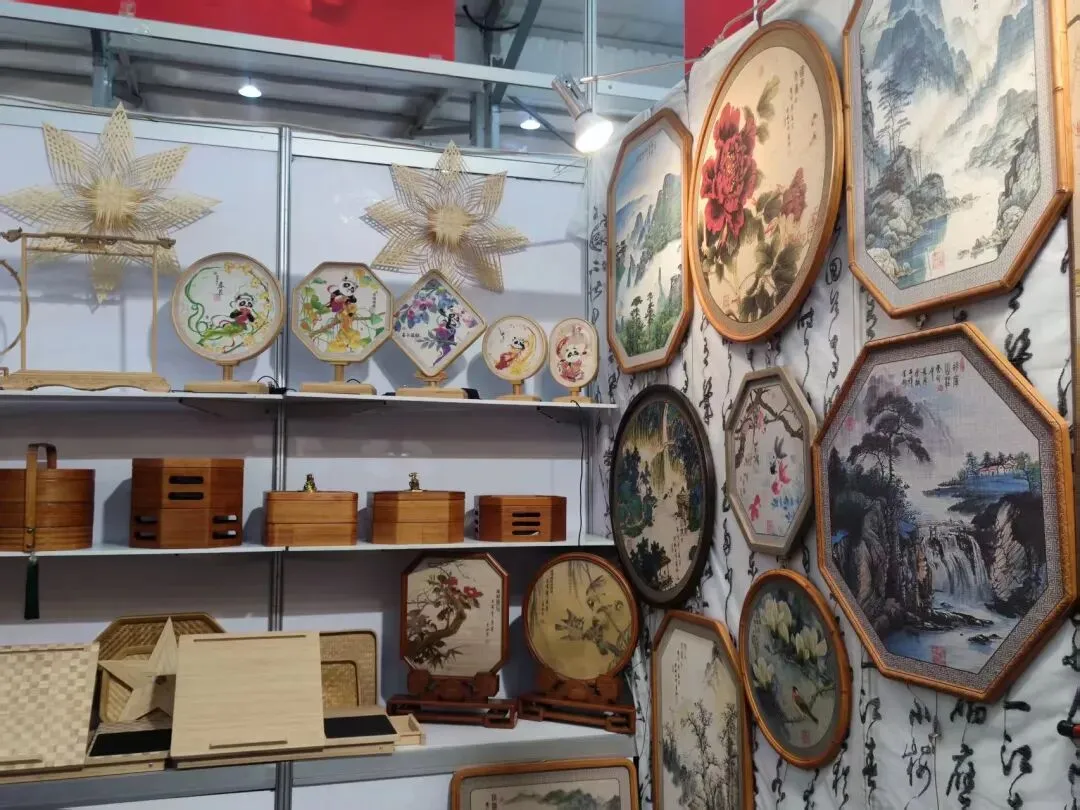 在另一侧展位上,中艺家具的竹制家居与非遗竹艺作品格外亮眼。竹丝画、竹编台屏、竹制收纳盒等产品将传统技艺与现代设计巧妙融合,熊猫主题的竹编装饰画、全竹构的环保家具令来自中东、东南亚的客商眼前一亮。现场洽谈气氛热烈,意向订单金额达500万美元。这批订单不仅彰显了广宁竹艺从“乡土记忆”向“国际优品”的跨越,更让非遗文化在海外市场焕发出新的商业活力,为“中国竹子之乡”的产业升级写下生动注脚。