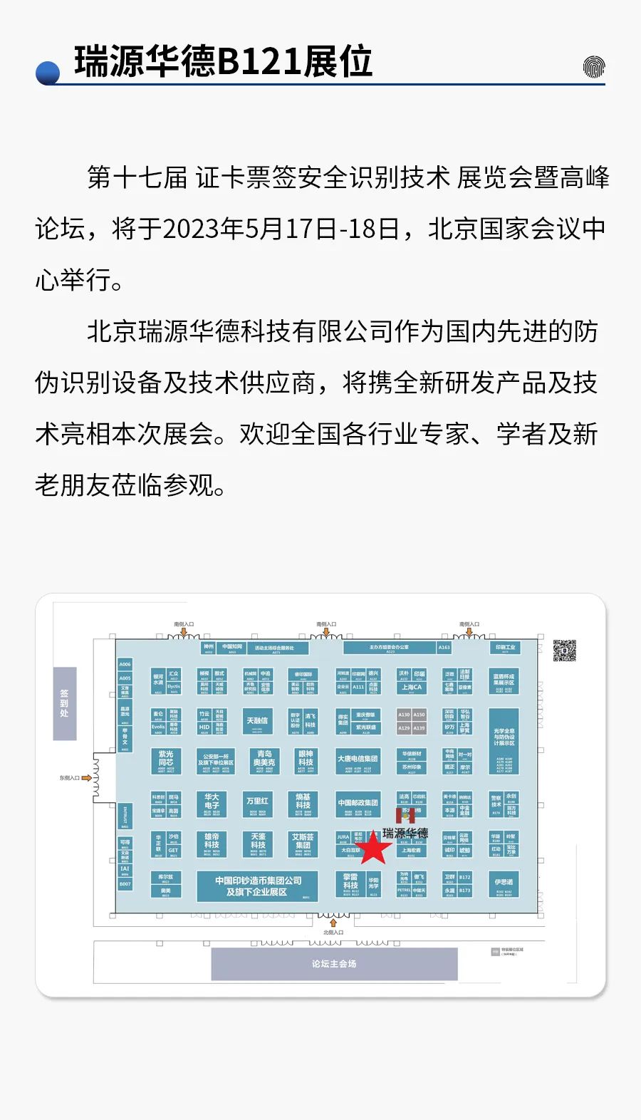 [展会邀请] 倒计时1天!瑞源华德邀您参加第十七届证卡票签安全识别技术展览会暨高峰论坛