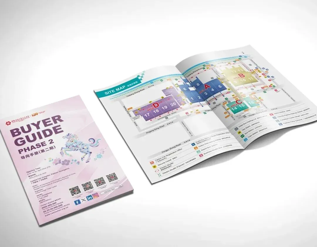 第139届广交会第二期于2026年4月23日-27日举办,继续贴心送上逛展小助手——经典导向手册与便携折页,全方位覆盖逛展所需,参与打卡活动迎惊喜。